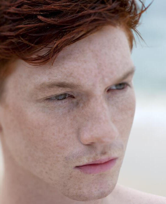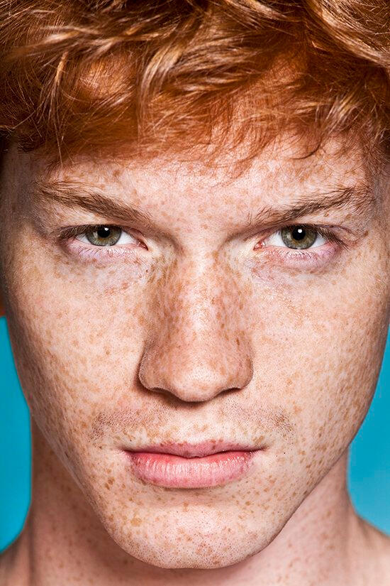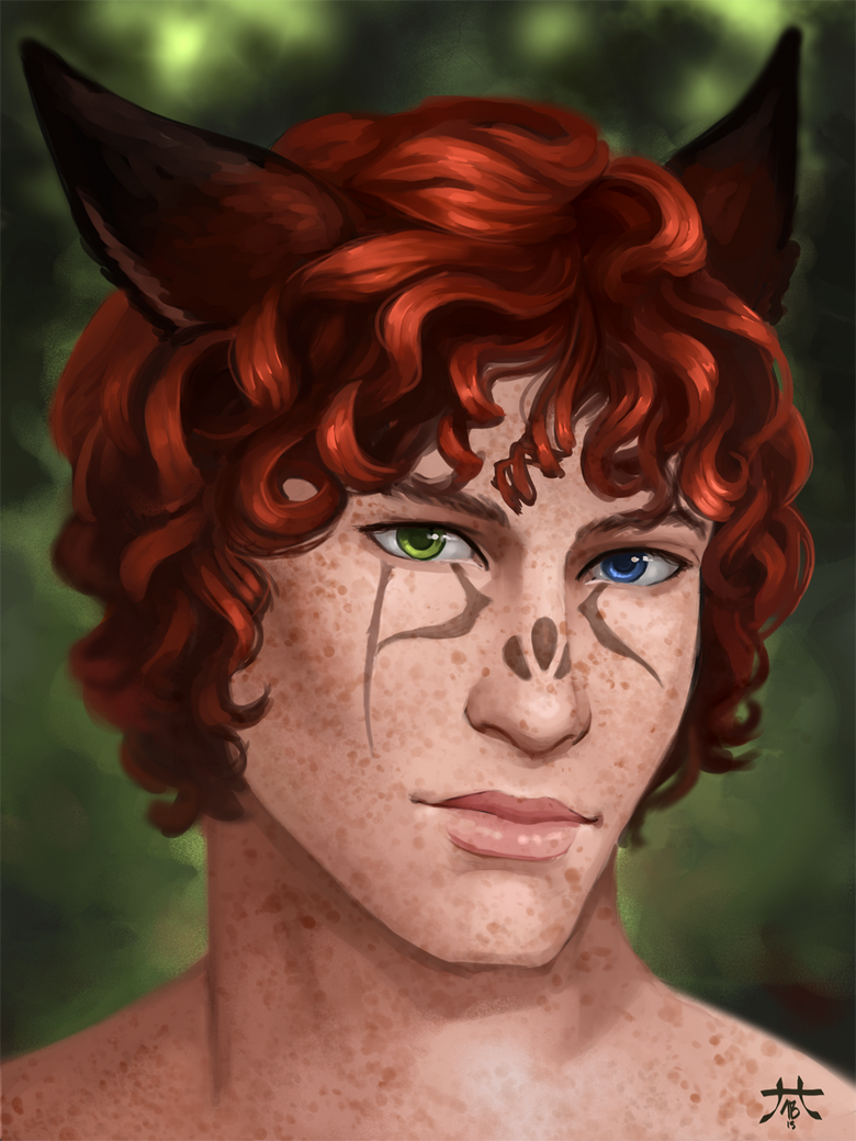 Noticeable features: Curly red hair, lots of freckles, heterochromatic eyes